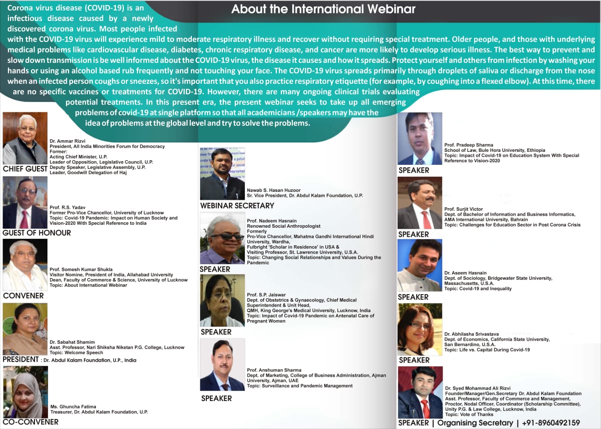 World Famous Renowned Speakers of different Subjects and Countries like India, U.S.A., Bahrain, U.A.E. and Ethiopia Participated in This International Webinar